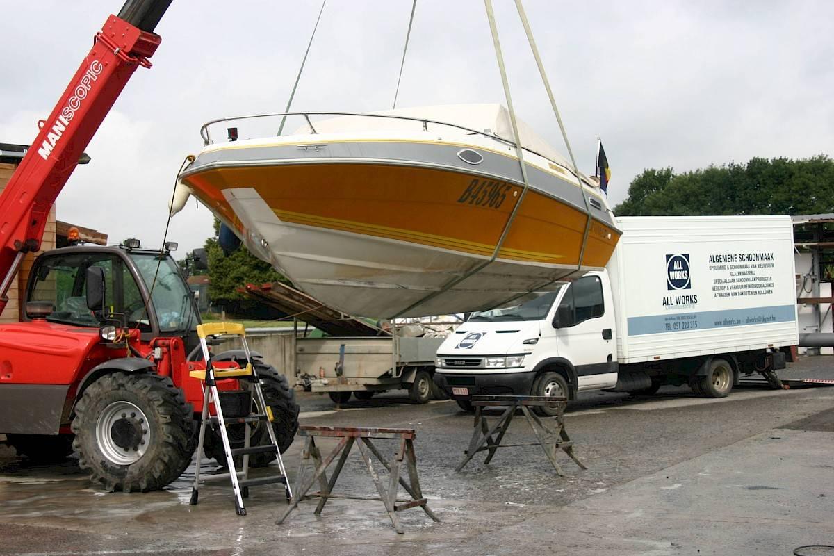 In het water krijgt je boot heel wat te verduren. Je moet er dus zeker van zijn dat het exterieur goed gepoetst en onderhouden is. Zo kan snel ingegrepen worden bij lakschade, krassen ... Heb je een teakvloer op het dek, dan vraagt die ook een gedegen reiniging en daarvoor zijn wij er.